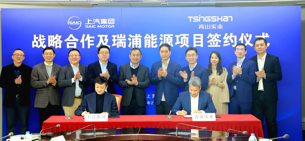 On February 21, Tsingshan Industry and SAIC Motor Corporation held a ceremony for strategic cooperation and the signing of the Ripu Energy project. Wang Xiaoqiu, President of SAIC Motor Corporation, and Xiang Guangda, the Chairman of the Board of Tsingshan Industrial attended the ceremony and delivered important speeches. Hu Xiaodong, Chairman of YCST, and Pan Jiming, General Manager of SAIC Planning Department, signed the cooperation agreement on behalf of both parties.