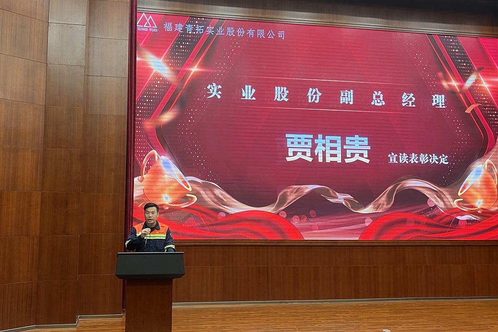 贾相贵宣读表彰决定,对先进个人给予充分肯定,并借此机会对第二届青山劳模获得者臧海洋表示祝贺,他号召所有员工以榜样为力量,努力提升自己,在工作岗位上继续做出新的贡献。